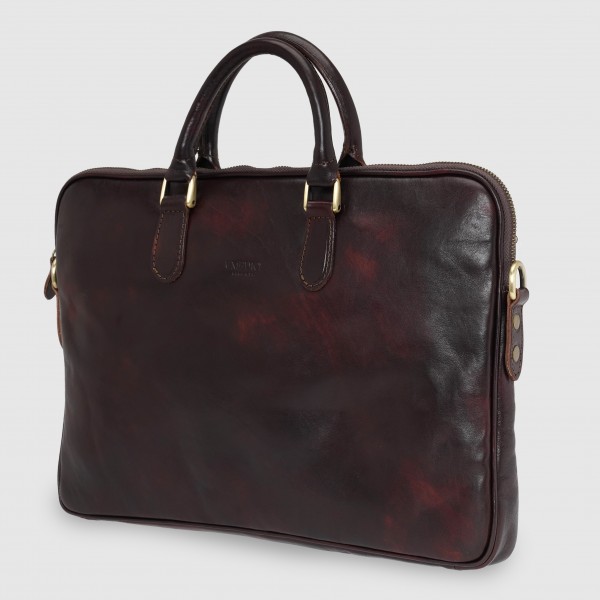 A soft and simple design characterizes this PC and document holder in leather. Modern, simple and lightweight, made in carefully selected leather with high quality trimmings. Ideal to hold all you need in a compact manner always at hand.