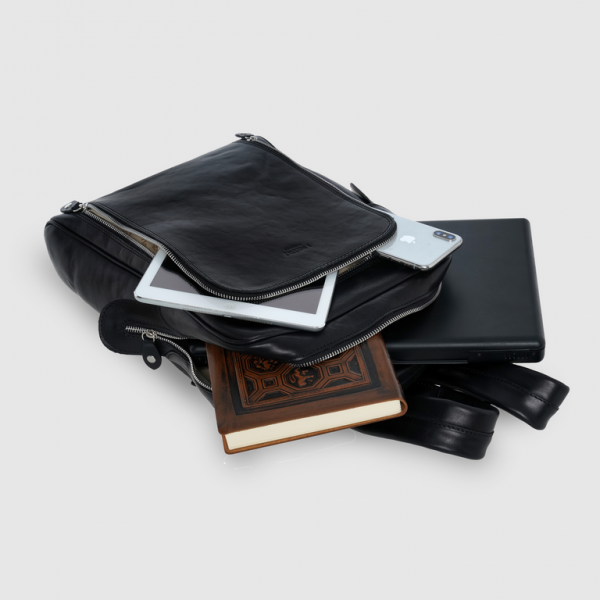 Leather backpack with a smart and elegant style. Capable to fit all is needed to spend the day in relax but at the same time for business day as well.